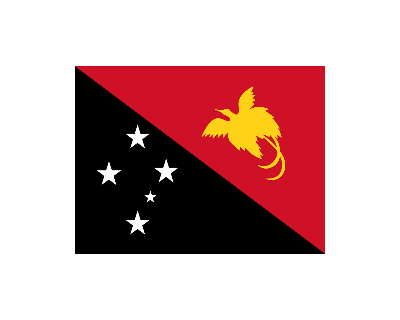 巴布亞新幾內(nèi)亞獨立國(Independent State of Papua New Guinea),簡稱巴布亞新幾內(nèi)亞,首都莫爾斯比港。巴布亞新幾內(nèi)亞國旗呈近似長方形,長與寬之比為4∶3。從左上角至右下角的對角線,將旗面分為兩個相等的三角形。右上方為紅色,內(nèi)有一只展翅飛翔的黃色極樂鳥;左下方為黑色,內(nèi)有五顆白色五角星,其中一星較小。紅色象征剽悍、勇敢;極樂鳥亦稱天堂鳥,是巴布亞新幾內(nèi)亞特有的鳥,象征國家、民族獨立和自由與幸福;黑色代表國家領土處于“黑人群島”之中;五顆星的排列位置象征南十字星座(南天小星座之一,星座雖小,但明亮的星很多),表明該國地處南半球。