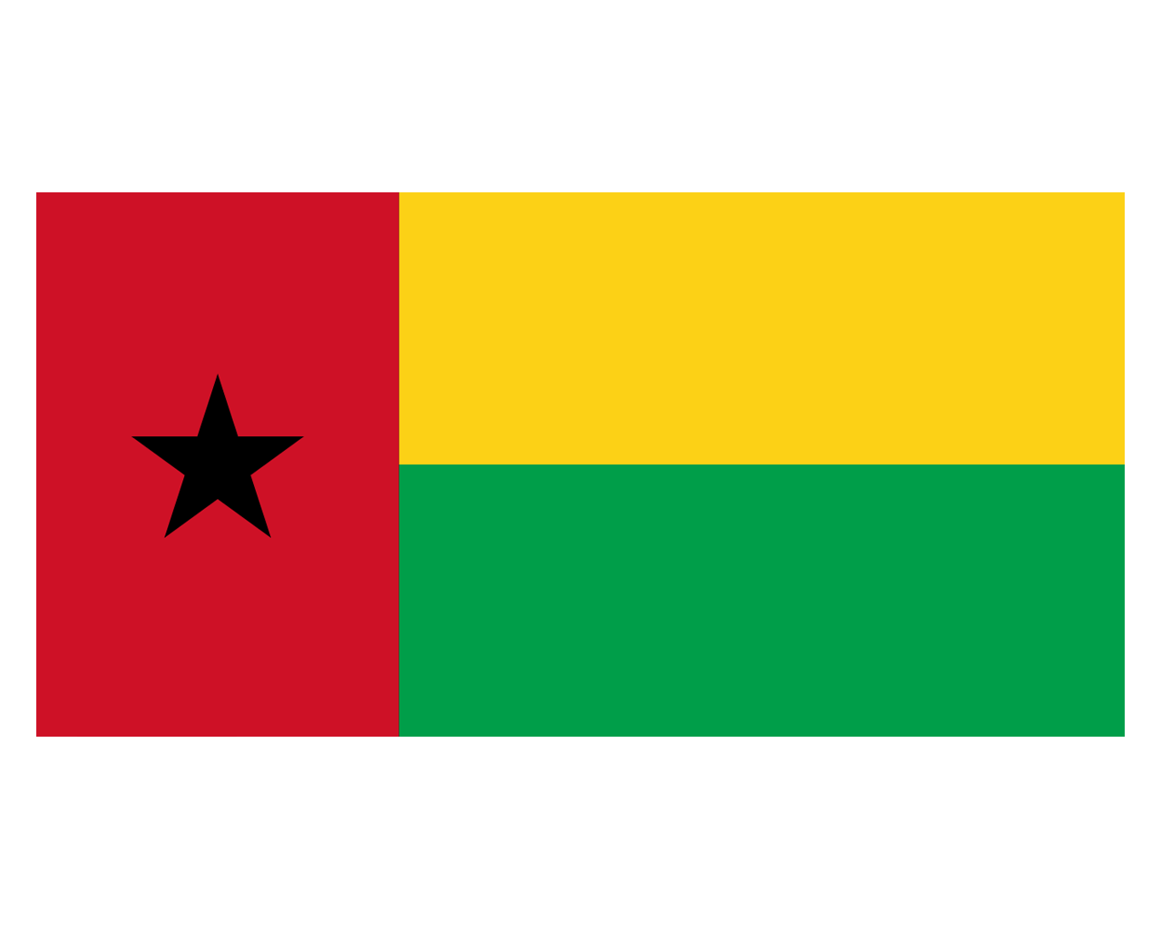 幾內亞比紹共和國(The Republic of Guinea-Bissau),位于非洲西部,北鄰塞內加爾,東方、南方鄰幾內亞,西鄰大西洋。首都是比紹。幾內亞比紹國旗啟用于1973年。國旗呈長方形,長與寬之比為2:1。由紅、黃、綠、黑四色組成。靠旗桿一側為紅色豎長方形,中央有一顆黑色五角星;旗面右側為兩個平行相等的橫長方形,上黃下綠。紅色象征為民族獨立而斗爭的戰士的鮮血;黃色象征國家的財富、豐收和人民的希望;綠色象征農業;黑色五角星象征國家的執政黨——幾內亞和佛得角非洲獨立黨,還象征非洲黑人的尊嚴、自由與和平。