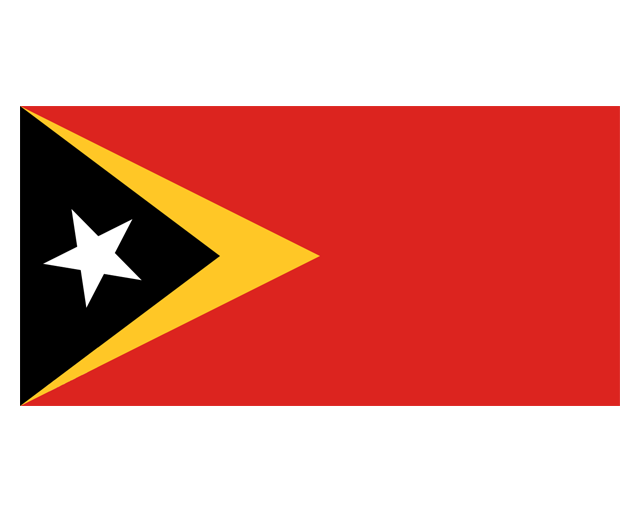 東帝汶民主共和國(Democratic Republic of Timor-Leste),簡(jiǎn)稱東帝汶,是位于努沙登加拉群島東端的島國,首都是帝力,國歌為《祖國,祖國,東帝汶,我們的國家》,東帝汶國旗啟用于2002年5月20日,國旗呈長(zhǎng)方形,長(zhǎng)寬之比為2:1。旗面為紅色,左側(cè)有一個(gè)黑色的等邊三角形和一個(gè)黃色的等腰三角形重疊圖案,黑色等邊三角形上有一顆白色五角星。紅色代表東帝汶人民爭(zhēng)取獨(dú)立自由的斗爭(zhēng),黑色的三角形代表必須擊倒反啟蒙主義,黃色的三角形代表東帝汶曾被葡萄牙、印尼等國殖民統(tǒng)治過的痕跡,中心有一顆稍微向左傾斜的小星星,代表引導(dǎo)著獨(dú)立自由的光芒。