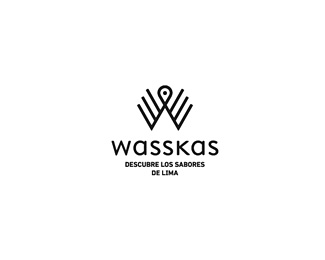 WASSKAS城市在線指南標志,使用字母“W”作為創意原型,融入地圖位置元素,瓦斯卡斯是秘魯利馬市的在線指南。