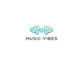 VIBES音樂標志設計,以字母“M”作為創意原型,融入音頻元素構成該標志的主創意,配色清爽。