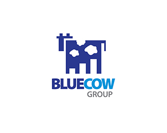 藍牛集團標志設計欣賞,該標志巧妙的將奶牛與工廠的設計結合到了一起。
