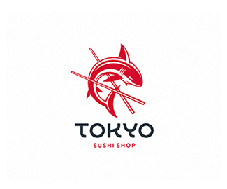 壽司料理店圖標(biāo)使用形象的魚和筷子,生魚片是料理的代表菜,而筷子在圖案中起到了很好的視覺平衡作用。