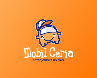 Mobil Ceria學(xué)校校車標(biāo)志以卡通的“車”和“帽子組合成該標(biāo)志的主識(shí)別圖形,以橙色和藍(lán)色作為主識(shí)別色。