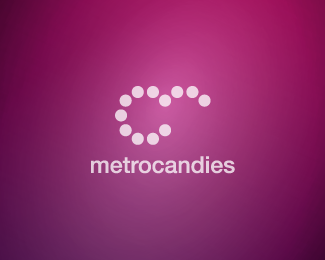 metro candies糖果地鐵標志設計欣賞,以幾何點陣的方式構(gòu)成字母“M”和“C”,整體以紫紅色+白色作為識別色。