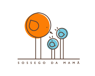 Sossego達媽媽品牌標志設計欣賞,很有愛的一個母嬰品牌標志設計,使用小鳥作為該標志的主創意元素,整體以橙色和藍色作為主識別色。