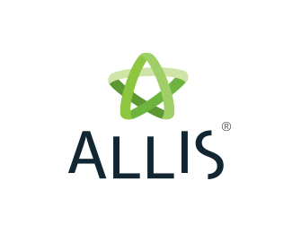 Allis星形編織帶創意標志設計,使用編織帶連接成一個星形的圖形,以綠色作為主識別色。