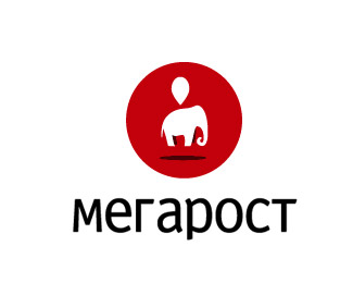 圓形的Logo設計,使用大象和氣球的剪影創意組合,以紅底作為主色調。