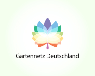 Gartennetz德國聯盟花瓣樹葉標志設計,使用多彩的葉片組合成樹葉開關的創意圖形。